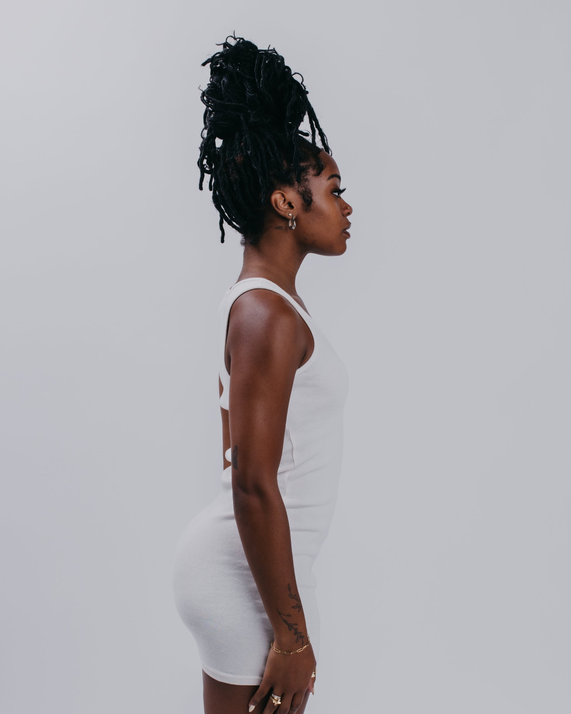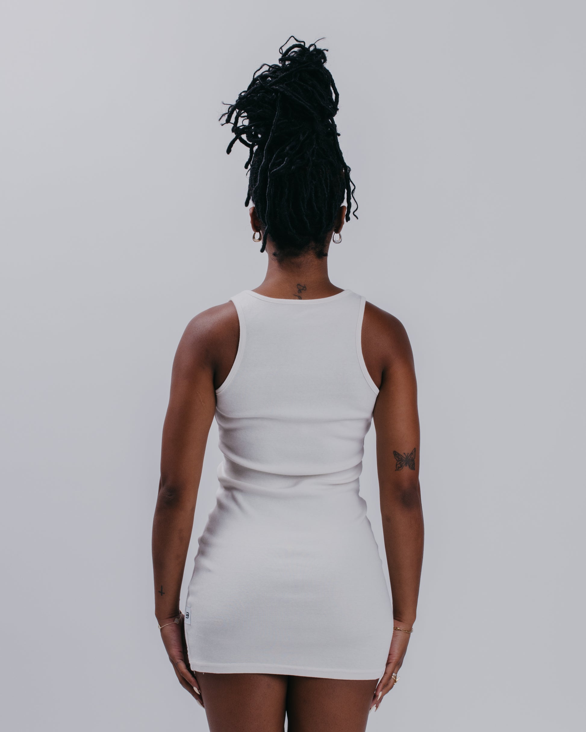 WOMENS HIGH NECK CONTOUR DRESS - BLANC DE BLANC