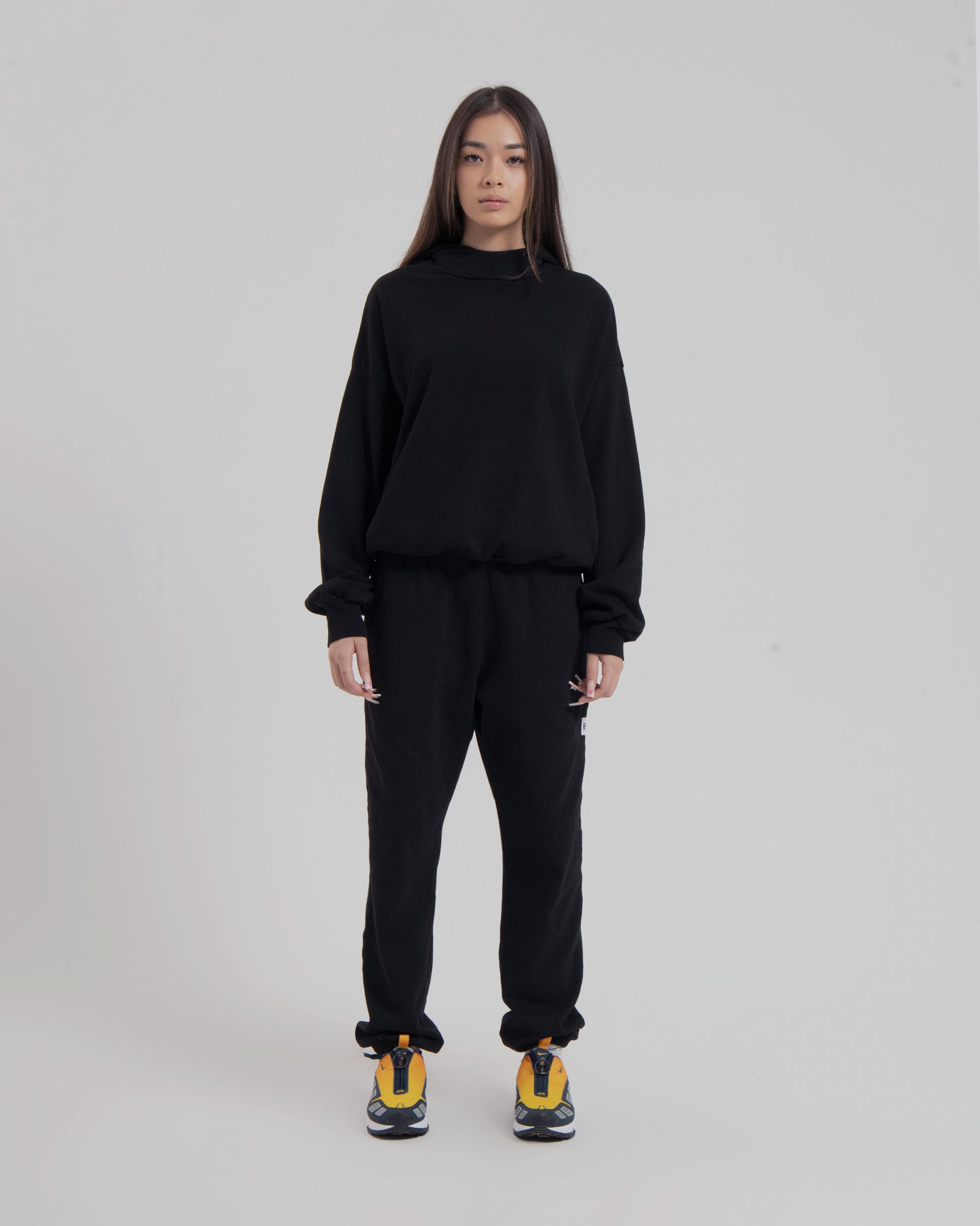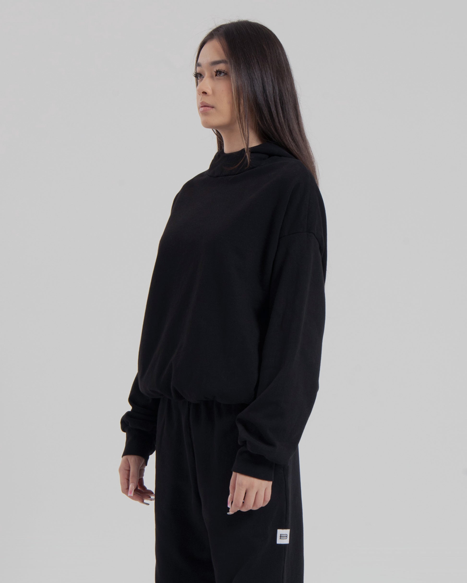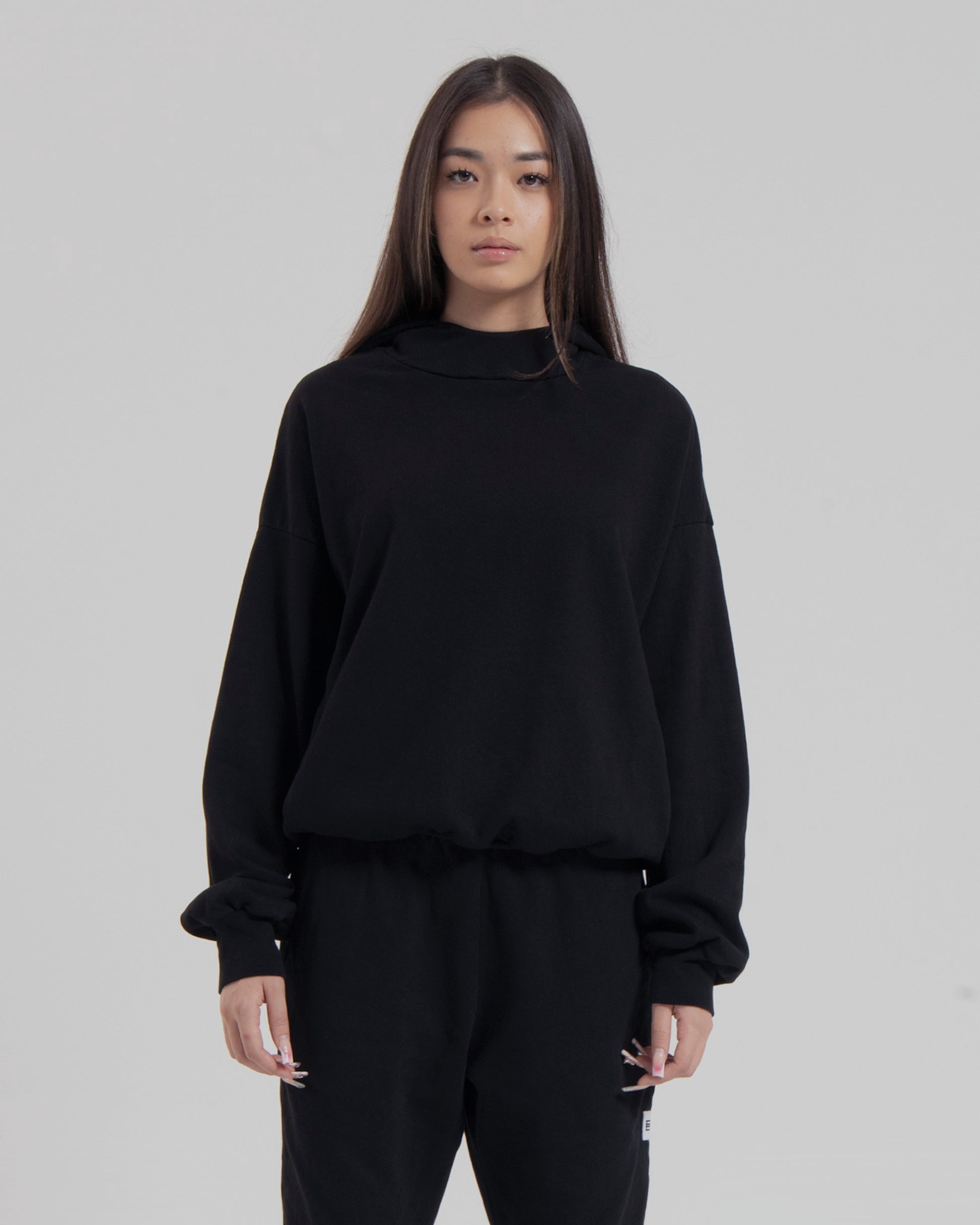 WOMENS MOCK NECK HOOD - JET BLACK